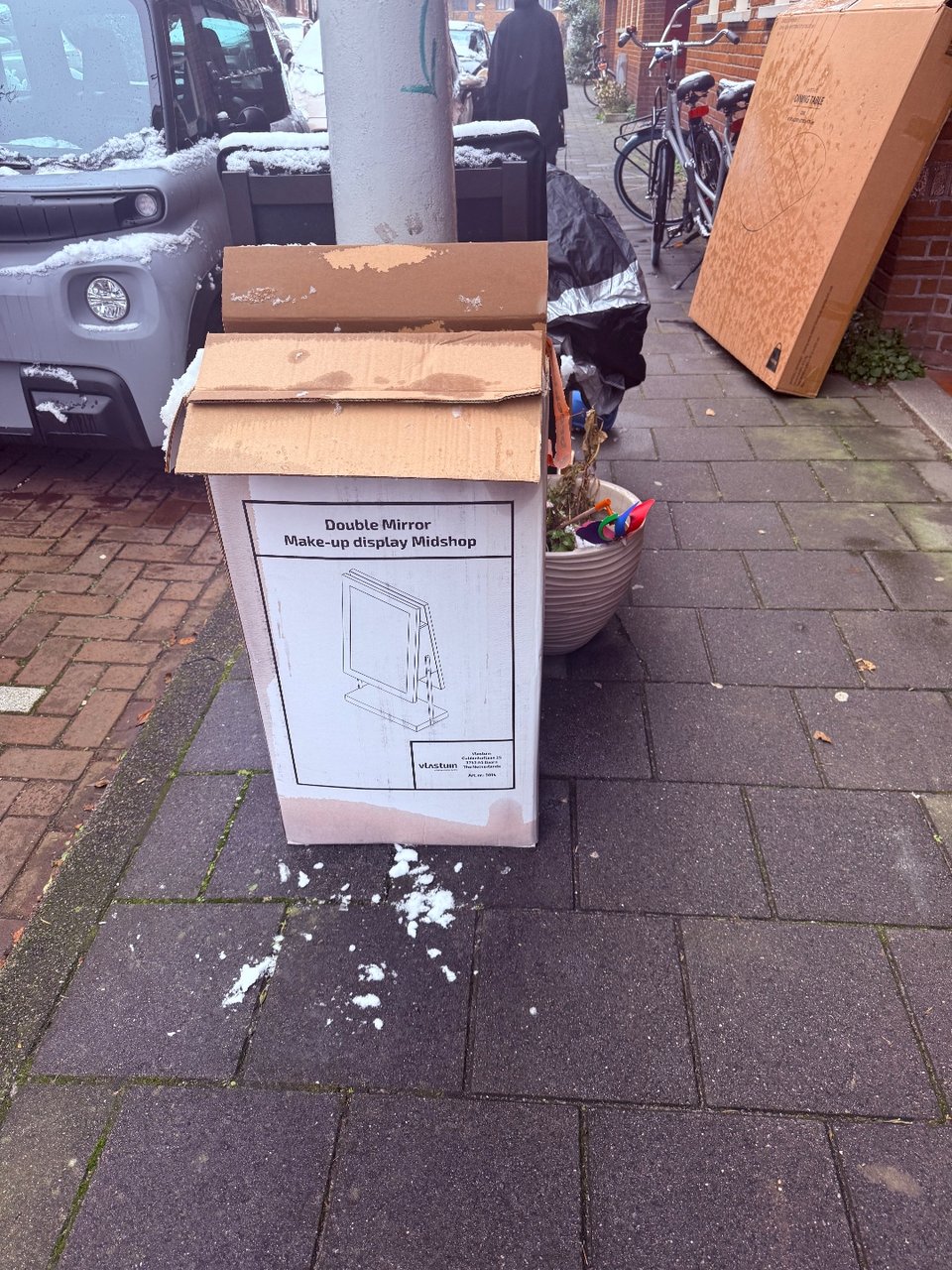 Nog helemaal goede meubels. IKEA Billy, bureau, stoelen, Zelfs een Dyson, moet wel vaak opgeladen worden. En een kratje vol met goede flessen wijn.