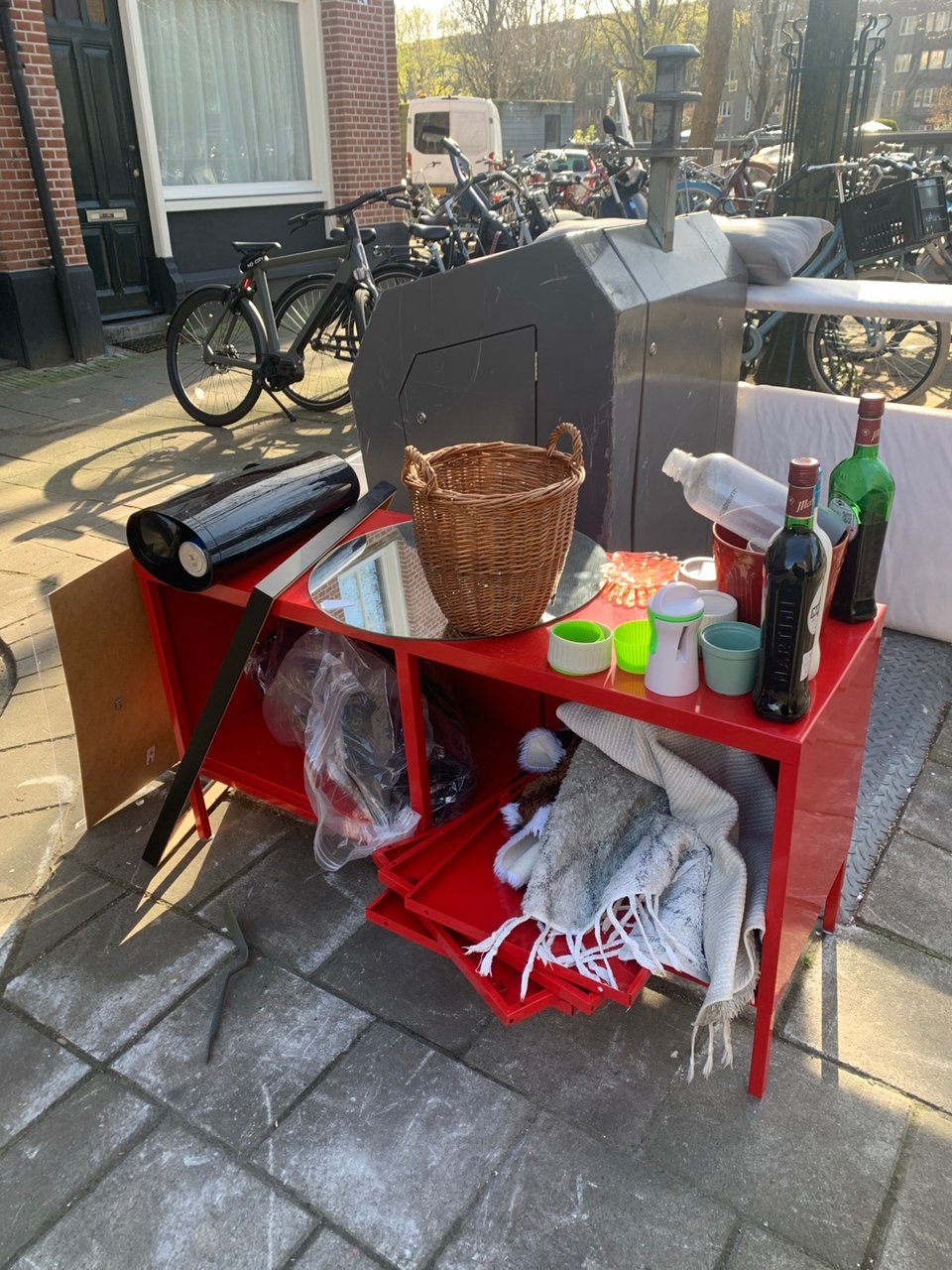 Really cute pink side table with lots of drawers and a small cabinet. Has delftware handles too. Available for pick up today in Amsterdam West!