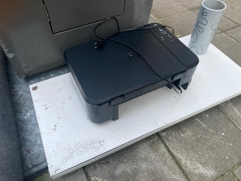 Printer on a sidewalk in front of Eyewish store