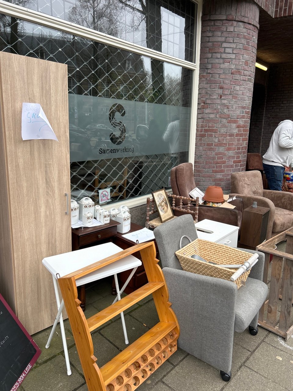 Aanbod tot 17 uur in Dapperstraat Afvalpaleis. Ook binnen welkom. Spullen zijn gratis, een financiële gift mag. Je kan hier ook spullen inbrengen om door te geven in onze doorgeefwinkel.