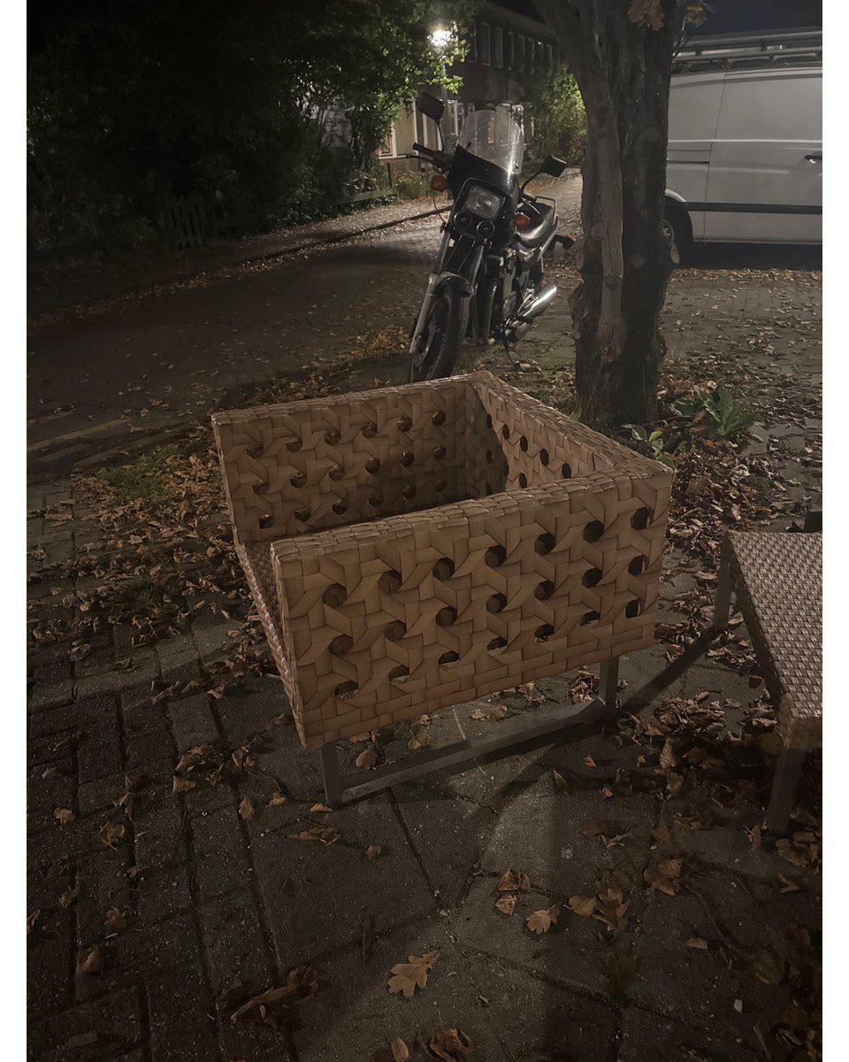 Pressed wood, also in box (did not open fully because of rain)