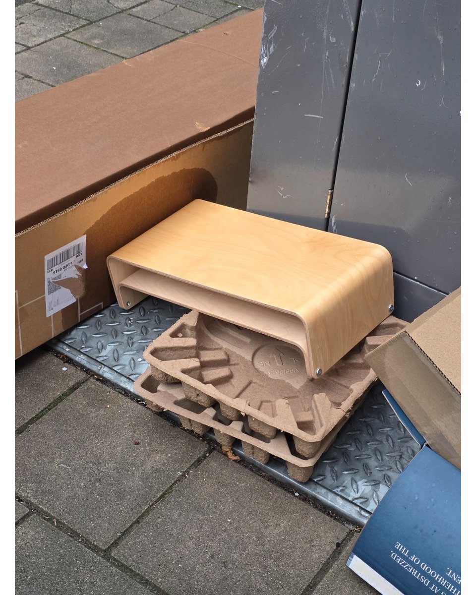 Really nice solid wood and metal half moon table, maybe like 50/60ish cm wide. Pretty heavy.